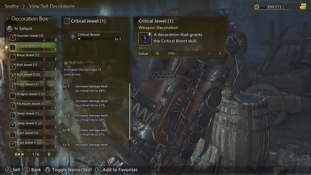 When you get to high rank I highly encourage you to start putting decorations on your armor and equipping talismans. This could be done by either visiting Gemma the Smithy or by entering your tent. By doing so you can increase your player stats like elemental resistance, attack power, and ailment resistance. In my experience, I found a talisman that gave poison resistance when I was fighting a monster that did poison damage.
